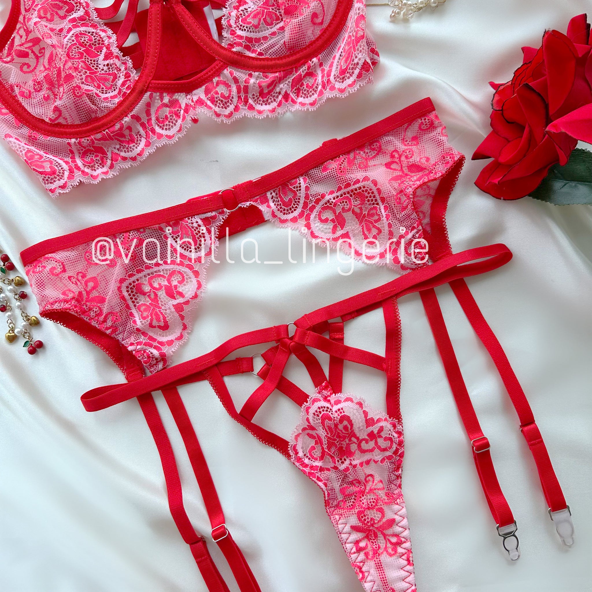 Set Karina rosado con rojo